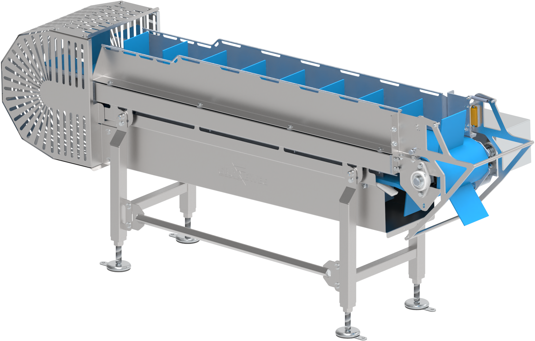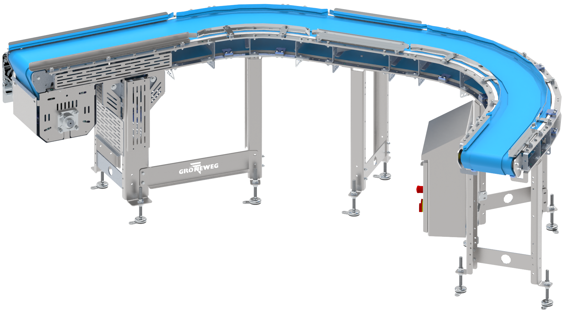 - With modular chain, rod mesh belt or belt depending on application