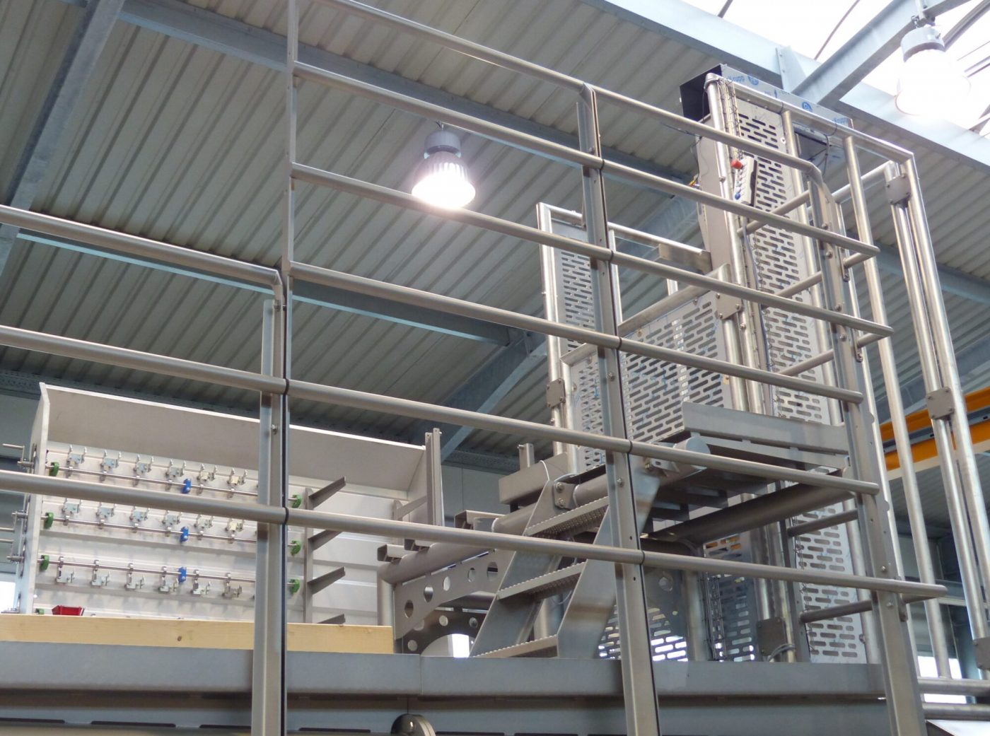 Bühnenanlagen im Hygienic Design inkl. Treppe für z.B. Mehrkopfwaagen zeichnen sich durch eine stabile Bauweise aus.