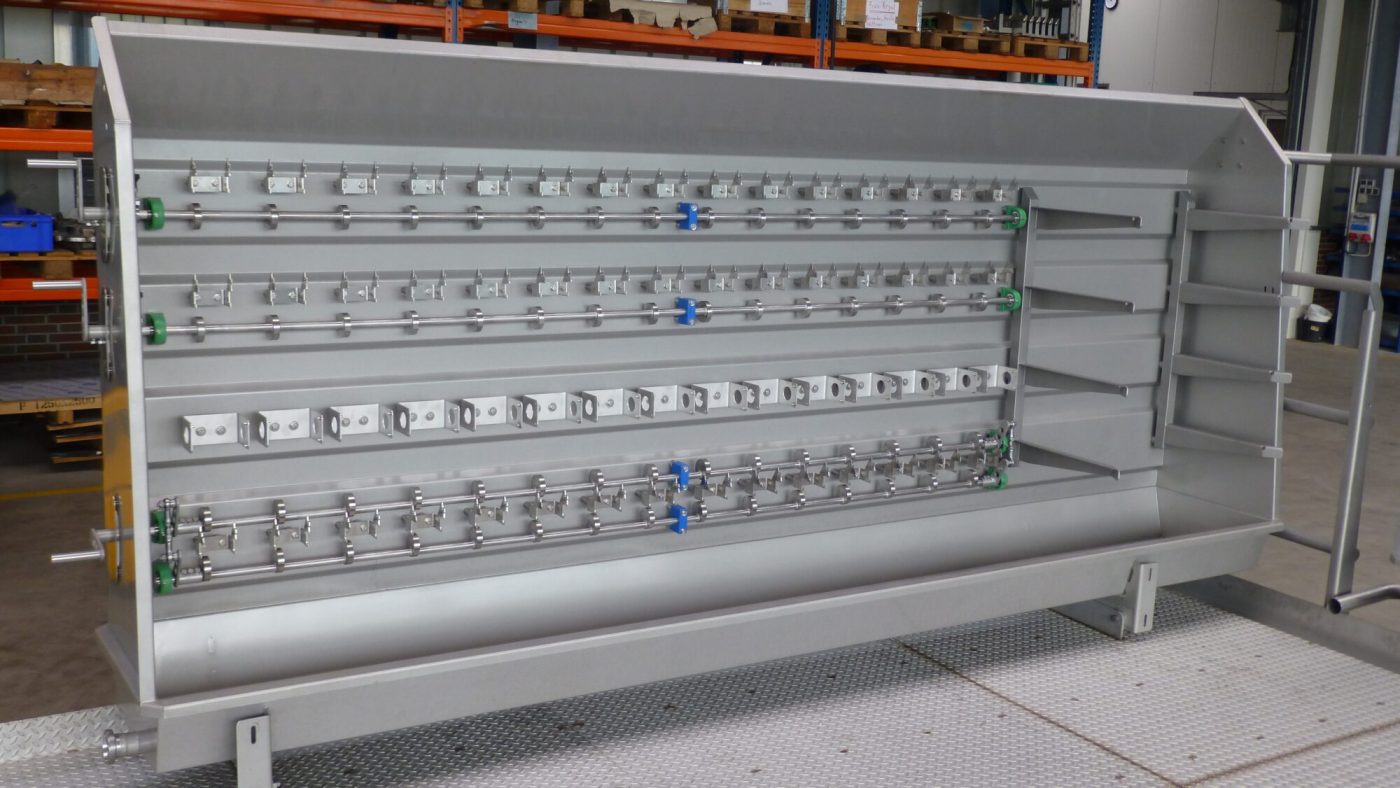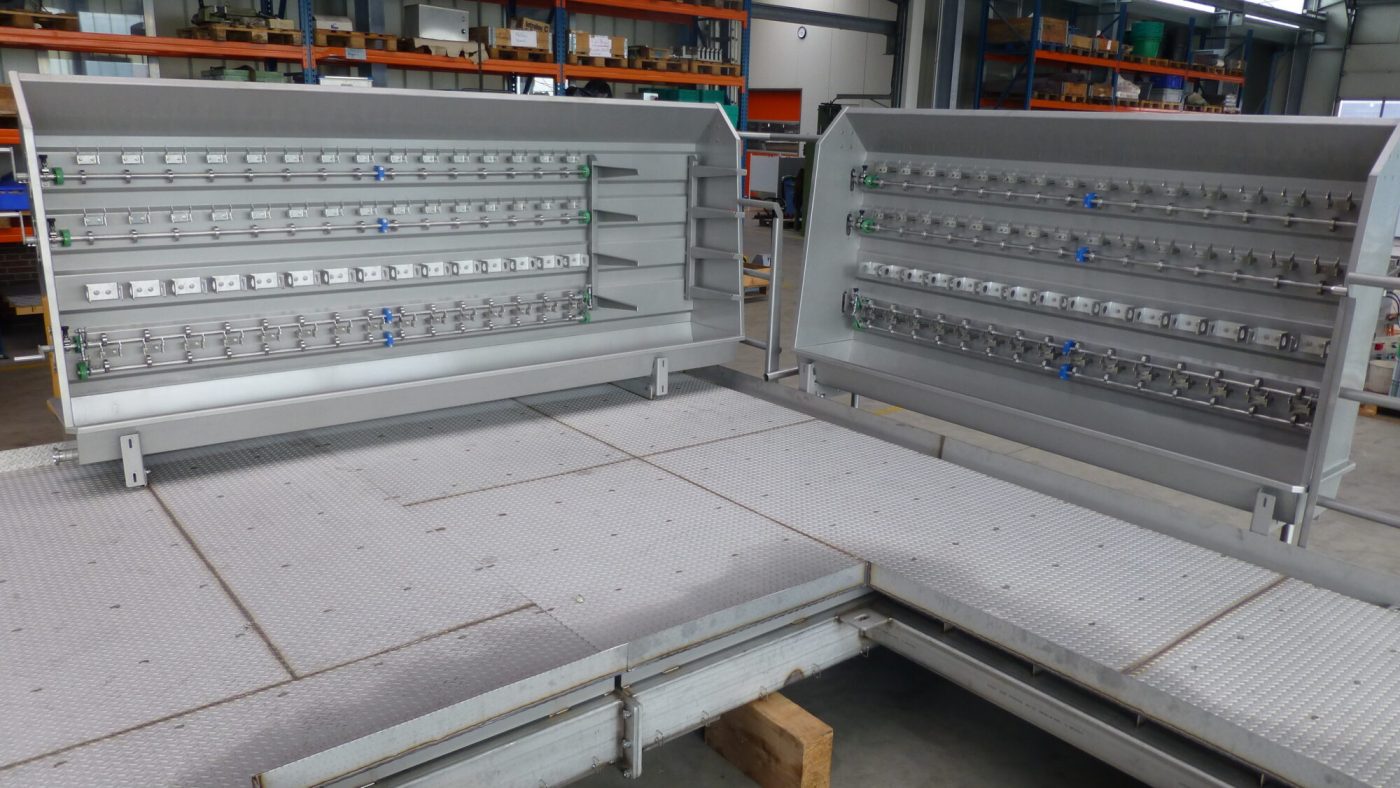 Waschwände für Trichter oder Wägebehälter von Mehrkopfwaagen oder als Waschwaagen für den flexiblen Einsatz.